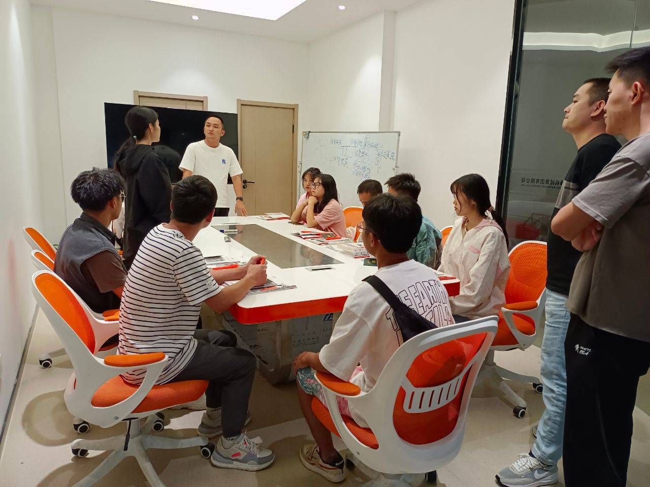 结业仪式上,各部门领导出席本次活动,共同欢迎新成员的加入,营销中心副总裁余总热情地为大家介绍了部门及岗位职责,帮助新加入的成员对部门情况有个初步了解,便于后续工作的开展及交流。并希望在今后的工作中,部门老员工们可以起到“传、帮、带”的榜样作用,为边锋新鲜血液的成长贡献力量。同时也鼓励八期同学们潜心学习,虚心求教,争取的在今后的工作中有更加出色的表现。